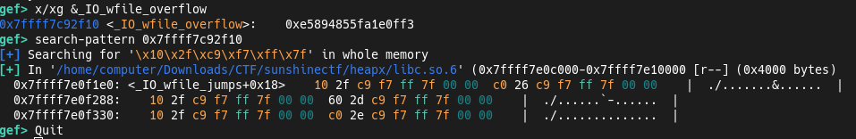 First we must search the pointer to _IO_wfile_overflow: